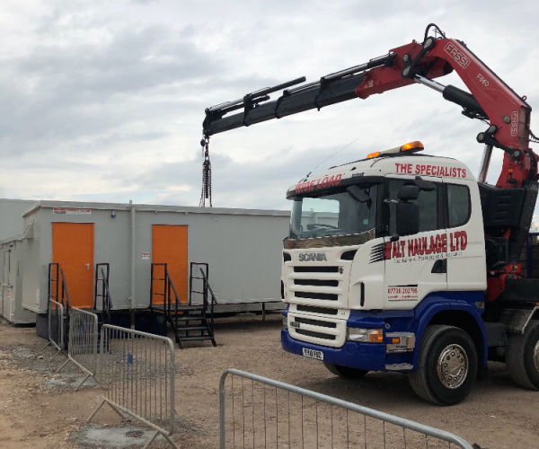 Our crane-assisted can lift and load containers, portable cabins and other loads onto our haulage vehicles in the safest manner possible. Our HIABs can lift up to 10.5 tonnes and we can lift up to 2.5 tonnes at a reach of 17 metres.